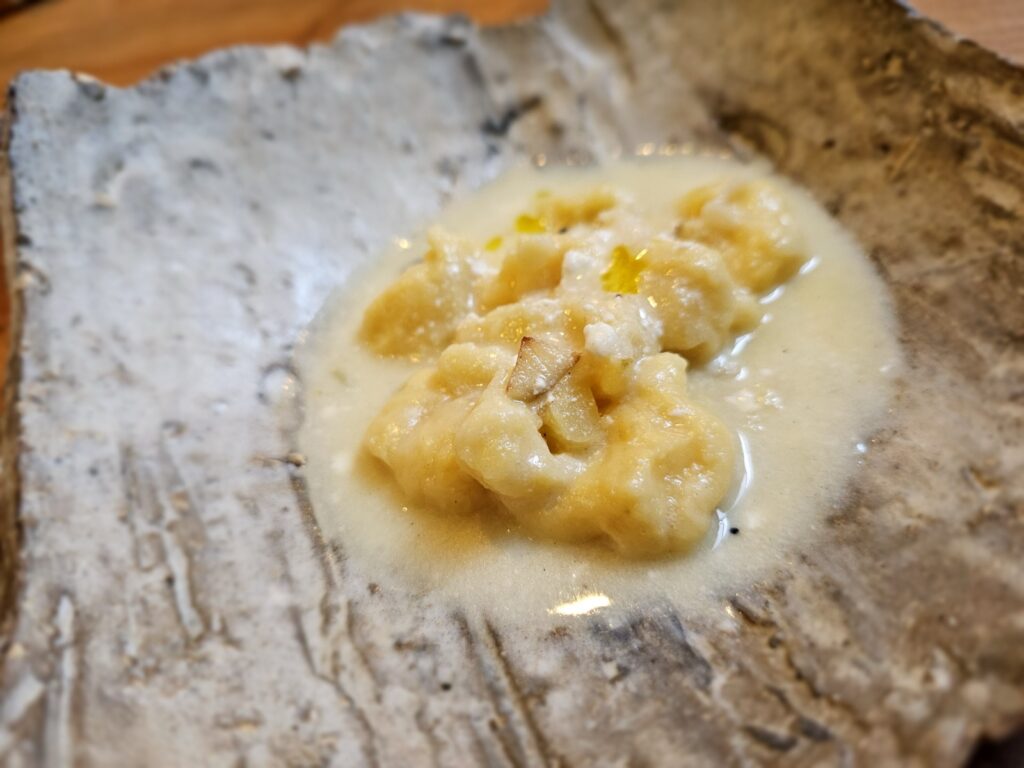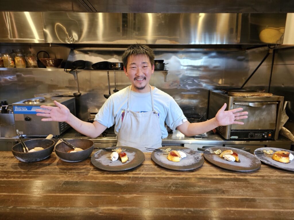 散步了一上午,感到飢腸轆轆的午餐時分,就是尋覓遠野美食的好時機了。「Ono Hidume」是一家由主廚菅田幹郎先生主理的義大利餐廳,以當地食材為核心,提供精緻的料理,讓人品嘗到遠野的風味。菅田先生強調食材的來源,使用自家農場的牛肉、牛奶,以及自家種植的蔬菜和香草,甚至親自汲取山泉水,展現對食材的極致追求。餐廳的特色菜包括手工製作的麵食,採用當地小麥製成,並以傳統手工方式切割,口感彈牙。此外,主廚還會根據季節變化,選用當季食材,創作出獨特的料理,讓客人每次造訪都有不同的驚喜。