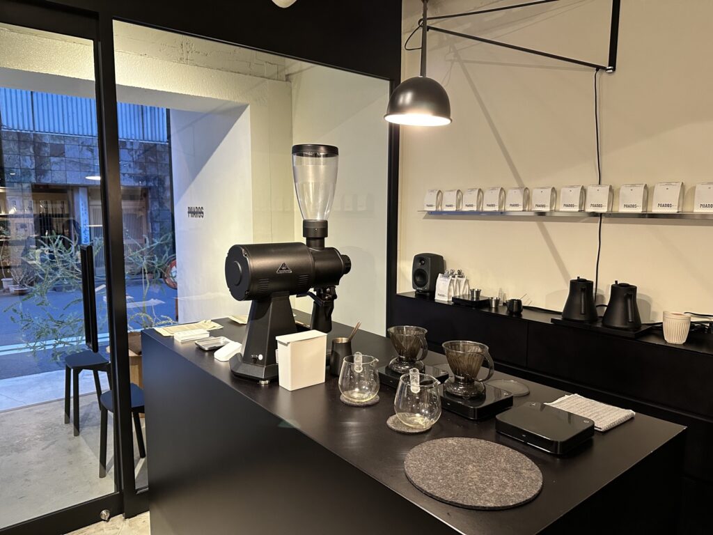 Pharos Coffee 是一家源自台灣的精品咖啡品牌,成立於 2019 年。 原本是在台北中山區朋丁(Pon Ding)複合空間內的咖啡店,2022 年 11 月,Pharos Coffee 在東京神保町開設了海外分店。 店內除了提供單品手沖咖啡外,還設有藝廊空間,定期舉辦展覽和快閃活動,提供享受咖啡與藝術的融合體驗。藝廊主要展示台灣藝術家和品牌的作品,將台灣的藝術與文化介紹給日本。