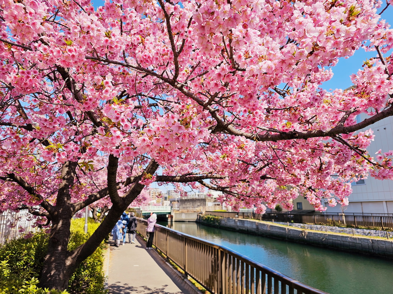 這條沿著大橫川綿延的步道,兩側種滿了河津櫻,三月上旬盛開,讓人搶先感受春暖花開的氣氛。很特別的是,河川某一側的櫻花,是種植在住宅區裡,因此不開放外人進入,但正因為這樣,可以在川的另一邊遠眺,櫻花樹下沒有人頭攢動的靜謐美景。再往南走,還能一路漫步至清澄白河,順道品嚐當地知名的咖啡館,讓賞櫻之旅更加悠然愜意。