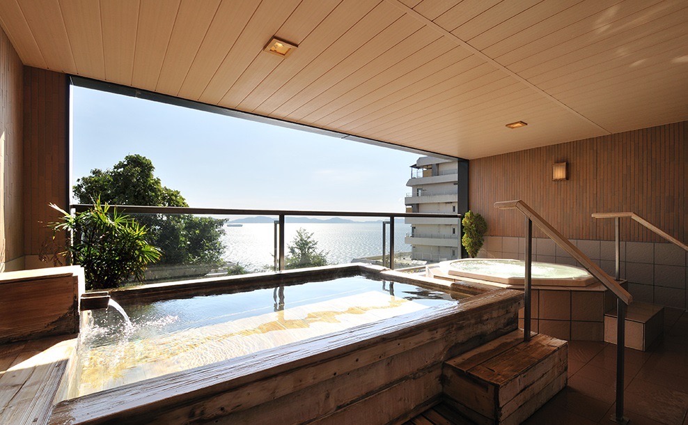 「末廣溫泉」位於蒲郡市,從飯店中可觀賞壯麗的三河灣全景,所有客房均能欣賞海景,部分客房還配有露天風呂。