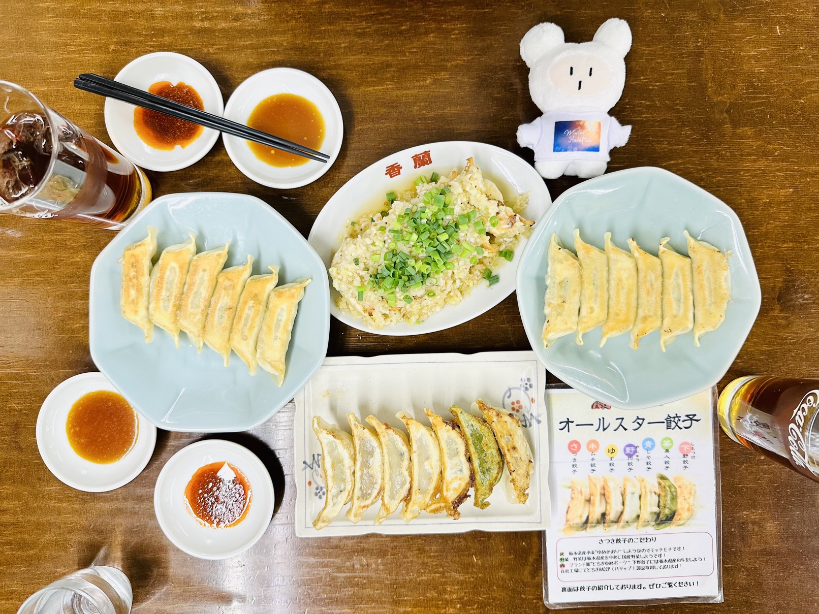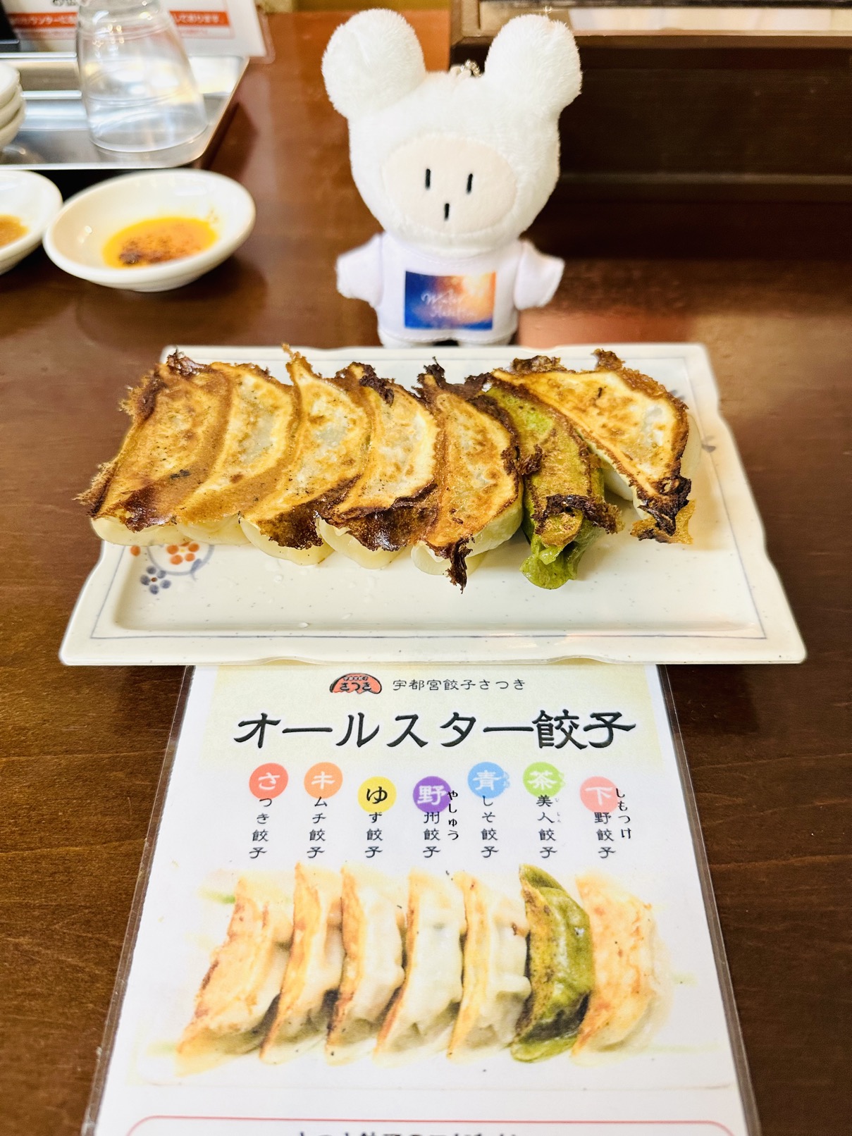 在常設店這一區裡,最有名的兩家店是「香蘭」和「宇都宮みんみん」,另外我推薦一間「さつき」的一款「ALL STAR餃子」,一盤有七種不同內餡的煎餃,口味迥異,非常美味也很有趣的吃餃子體驗。