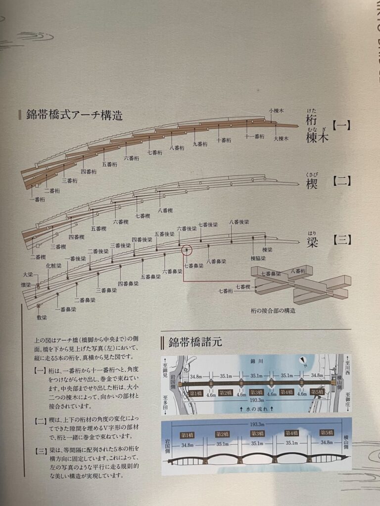 錦帶橋的構造複雜,由木材一片一片搭建成拱形,並以卡榫的形式讓整體接合更堅固。從橋面上走過時可能不會有感覺,但從兩旁的河岸近看橋的底部,就能感受到建築之美。很難想像當時的建築師是經過多麽精密的計算,才能建造出這樣的一座橋啊!