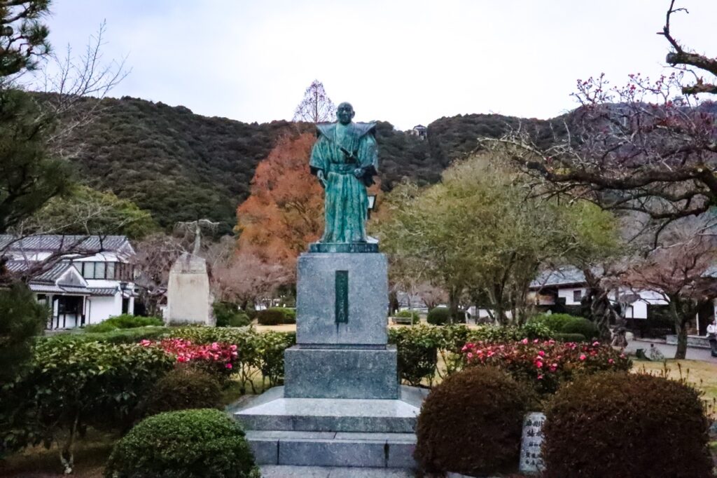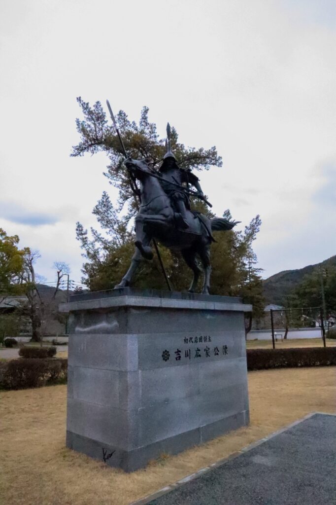 渡過錦帶橋進入橫山區域後,會發現兩座非常顯眼的雕像,岩國第一代領主吉川廣家與第三代領主吉川廣嘉。