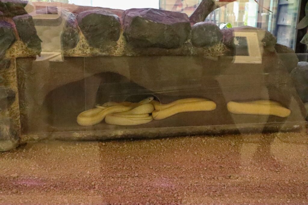白蛇館小小的,但裡面的資料十分豐富,從白蛇的傳說、身體構造、習性等等,都能在小小的博物館中一次了解。其中還有許多互動遊戲,非常有趣。
