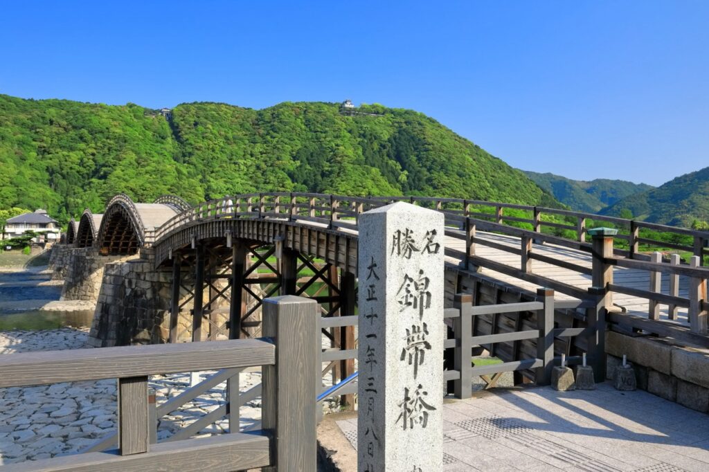 由吉川廣嘉帶領下開工的錦帶橋於 1673 年建立,與東京「日本橋」、長崎「眼鏡橋」合稱「日本三大名橋」。曾經多次因為洪水來襲而再度重建,全長約 193 公尺,連續五個拱形皆以木材建造,在世界上其他地方看不到這樣子的建築。