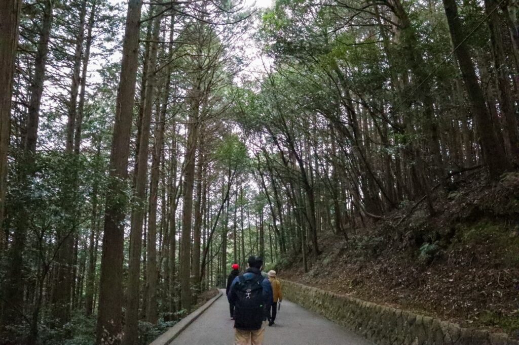 前往岩國城,需要爬山或者坐纜車抵達山頂。在通往岩國城的路上,會經過一大片自然休養森林,這是因為在岩國城廢城之後,政府禁止進入該山中,因此保留了原始風貌。高拔樹幹與蓊鬱樹葉遮蔽天空,有滿滿的芬多精!是非常清幽的山林步道。