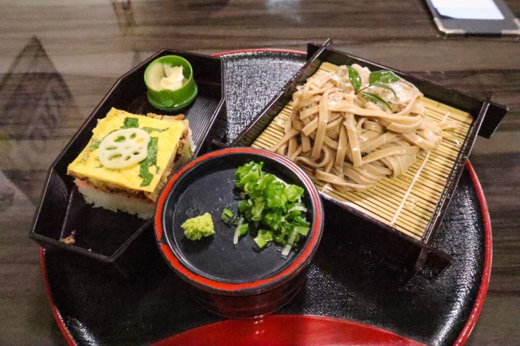 除了岩國壽司,建議大家還可以加上「蓮藕涼麵」一起吃!蓮藕是岩國的特產,一般的蓮藕有八個孔,但這裡的蓮藕則有九個孔!製成涼麵之後沒有什麼蓮藕的味道,麵體 Q 彈有勁,非常值得一試!
