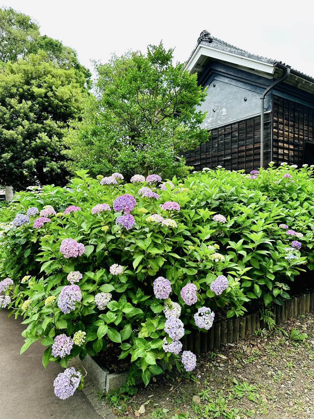 「鄉土之森」佔地廣闊,植有超過一萬株、約三十多個品種的繡球花,從西洋繡球、山繡球到墨田之花等品種齊聚一堂,色彩繽紛、層次豐富。步道沿著起伏的園區小丘鋪展,讓人能在自然森林與歷史建築環繞中,悠閒賞花拍照。