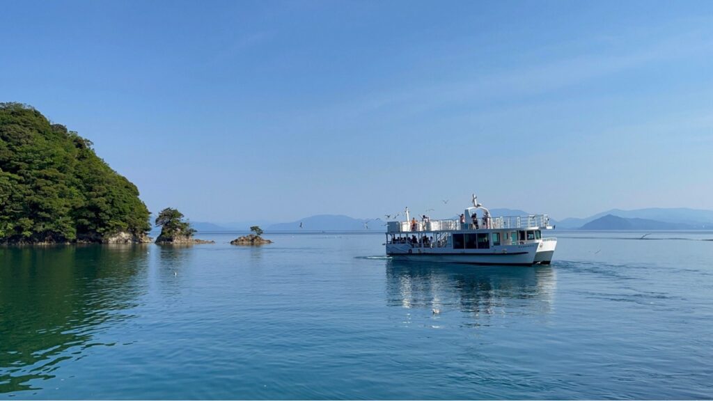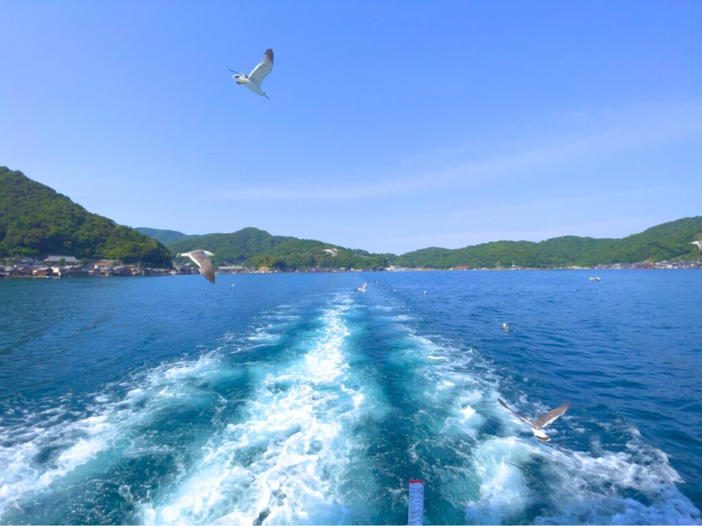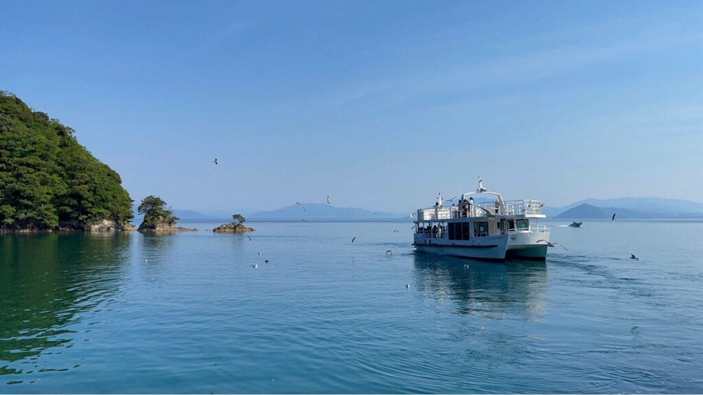 那天的陽光很強,但不炙熱,照在海面上閃閃發光,像是有人把碎金灑進整個海灣。雖然已經是夏天了,而且今年日本的夏季似乎來得特別早,但在船上吹著海風的那段時間,卻一點也不覺得悶熱,反而有種難以形容的自由,就像是自己也成了那些跟隨船影一起飛翔的鳥。