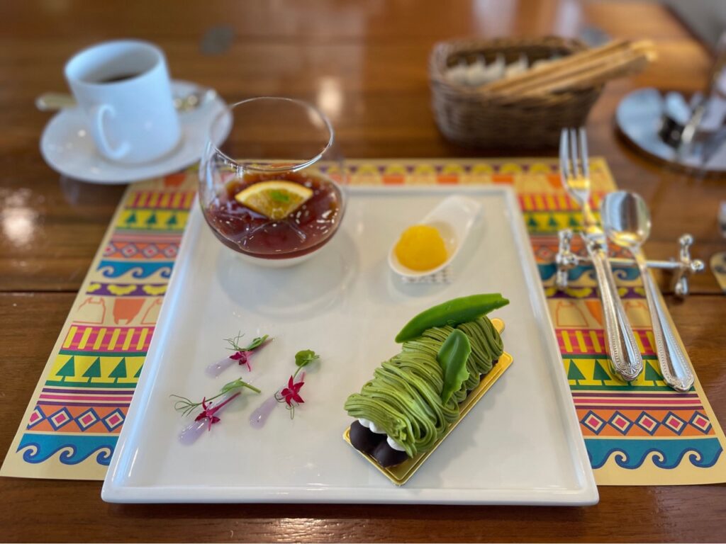 除了主食之外,還有幾道美味甜點,讓這份早午餐更像一場浪漫的茶會!以丹波茶與丹波大納言小豆製成的蒙布朗,抹茶香與紅豆泥交織,是超級經典的和風甜點。