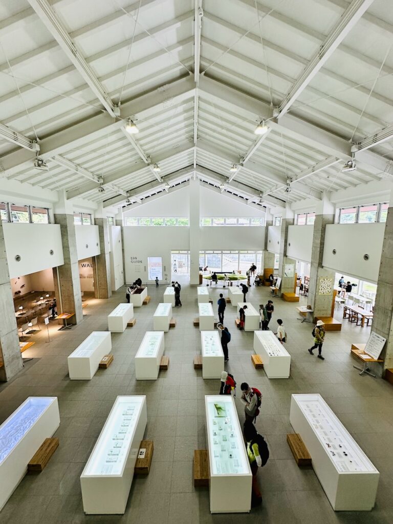 博物館以「觀光觀賞、學習教育、地域互動」三大功能為核心,內部展示十分多元。從壓克力封存的花與昆蟲,到彷彿漂浮在空中的標本牆,館內每一處展示都充滿巧思。不需要是生物學家,也能在這裡愛上高尾山的四季;不需要攀到山頂,也能在這座館中與自然不期而遇。對孩子們而言,這裡有迷你小山坡可奔跑玩耍;對習慣城市節奏的大人來說,一杯咖啡配上大片草坪與木作座椅,已是忙碌生活中最優雅的暫停鍵。