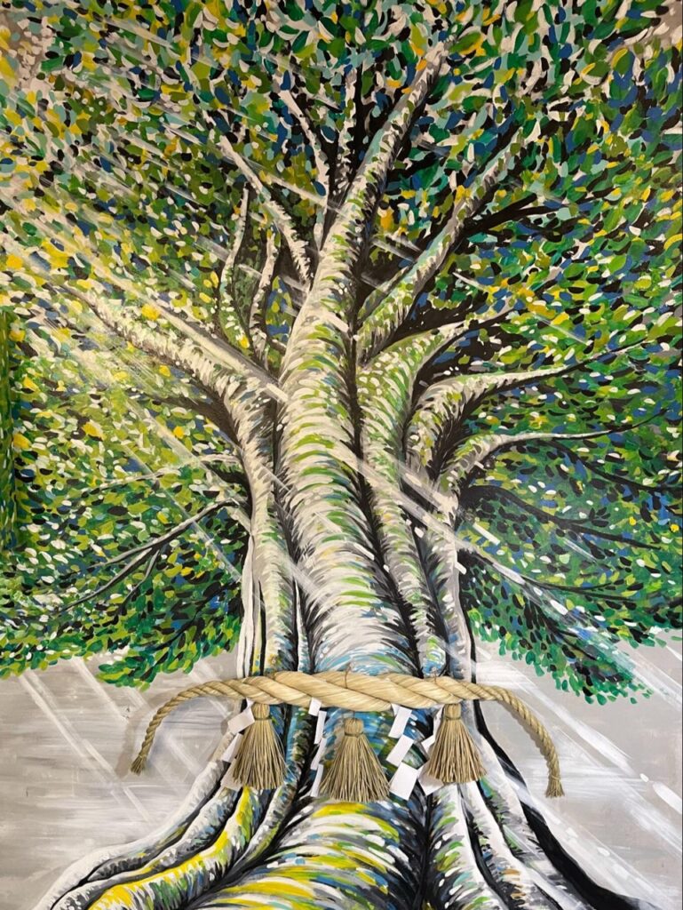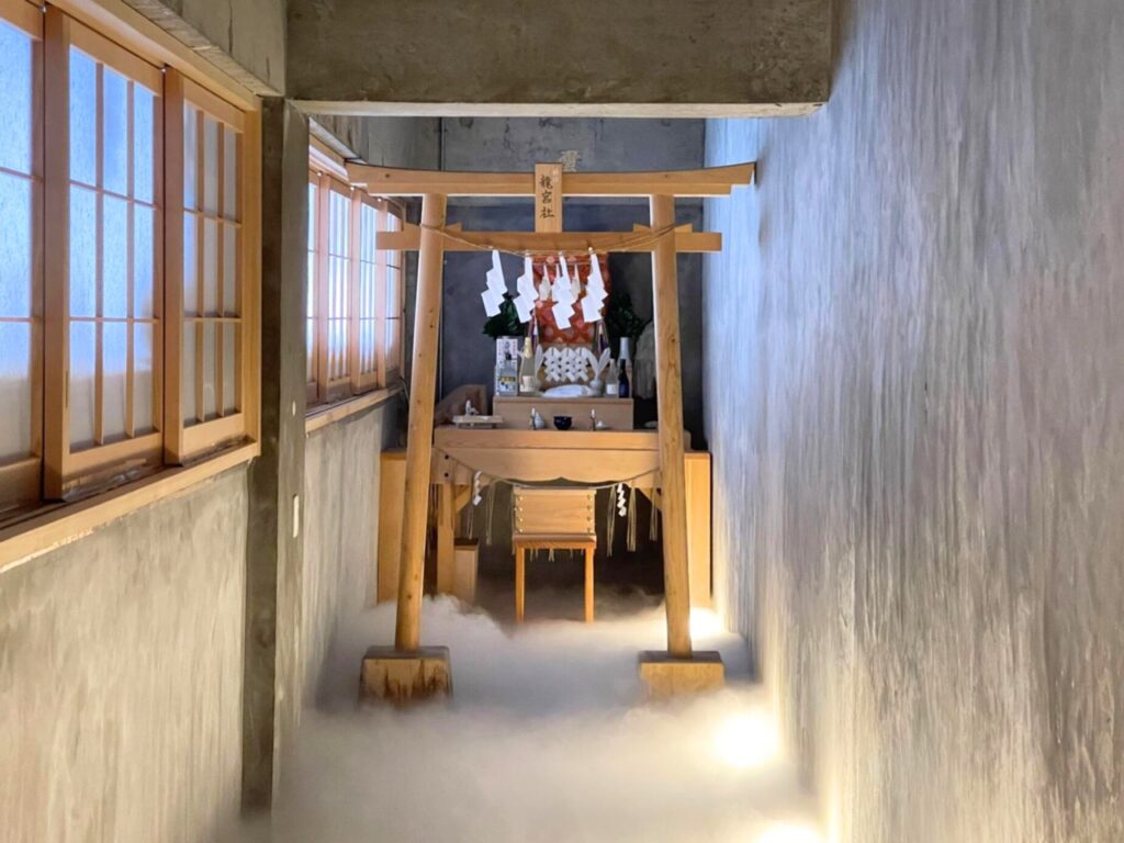 而正前方映入眼簾的,則是夢幻的雲海參道設計,搭配自然光與燈光投影,讓整體氛圍充滿神聖與幻想。不只是為了視覺效果,這樣的設計其實有著更深的文化意涵。神社的場景靈感來自世界自然遺產「奄美大島」與「加計呂麻島」,將島嶼的自然靈性與龍神信仰重新詮釋,在東京重現一座龍宮的意象場域。