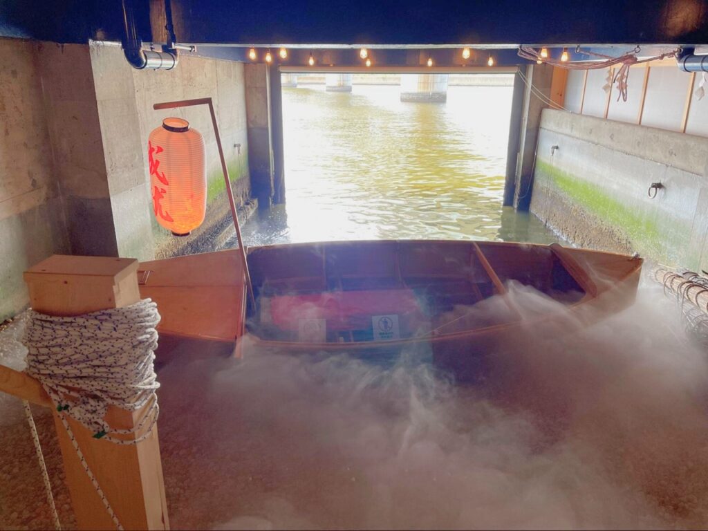 水池與外部的河川相連,會隨著水位變化呈現不同的倒影與深淺,近似於「潮汐現象」的流動感。而在水池一隅,靜靜停放著一艘以世界最古老船型為靈感設計的「葦船」,這艘葦船不僅具有文化意涵,也是神社空間中極具意義的一部分。