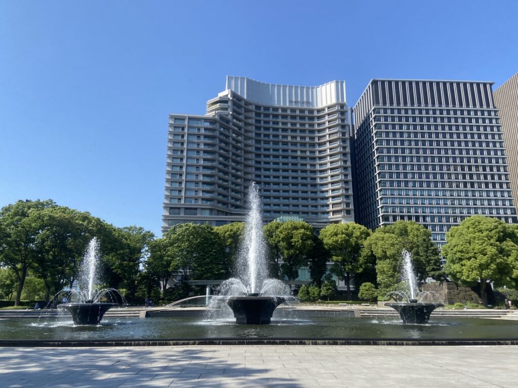 「和田倉噴水公園(和田倉噴水公園)」就在大手町站旁。裡面有一座 1961 年為慶祝明仁天皇結婚打造的大噴泉, 及1995 年為慶祝皇太子(現德仁天皇)結婚而修建的園區。公園裡有免費休息區、許多長椅,無論想買便當坐著吃、還是散步後稍作休息都很方便。入夜後噴泉會點燈,水幕在燈光映照下變得夢幻,非常適合拍照。