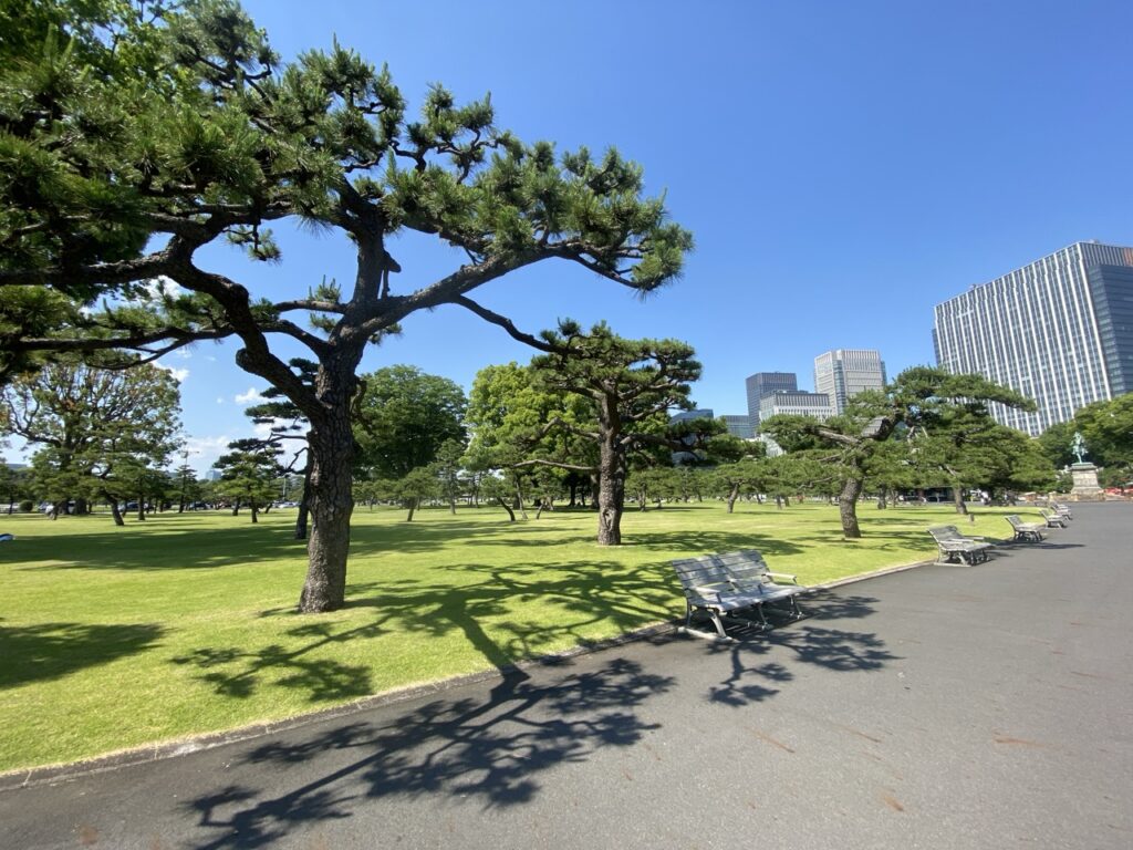 欣賞皇居壯麗景觀的東京自由行熱門地「皇居外苑」是一片全年無休、免費開放的都市綠洲,廣闊的草坪上點綴著蒼勁的黑松,與背景聳立的丸之內摩天大樓形成強烈對比。皇居外苑範圍廣大,包括皇居前廣場、周邊 12 道護城河水系、櫻田門、北之丸公園⋯⋯等。最近的車站「二重橋前站」出站,徒步約 5 分鐘就可看到主要景點。