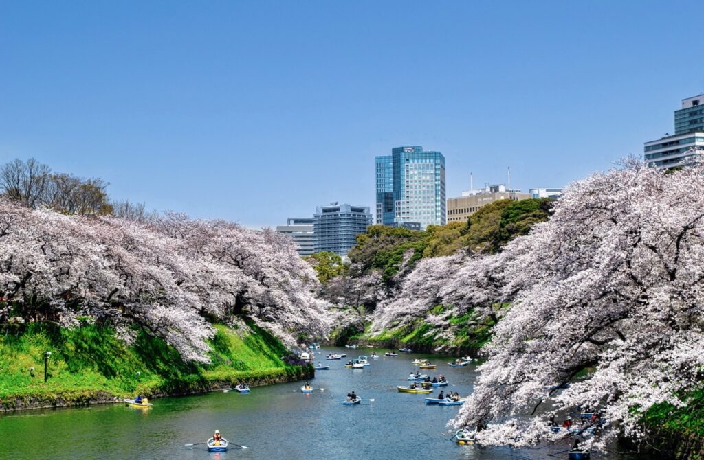 千鳥之淵就在北之丸公園旁,距離皇居外苑約10分鐘步行,位於護城河沿岸,是享譽全國的東京賞櫻勝地。每到春季,可在「千鳥淵划船場」租借小船,欣賞滿開的櫻花與護城河的倒影,體驗被櫻花環抱的浪漫。