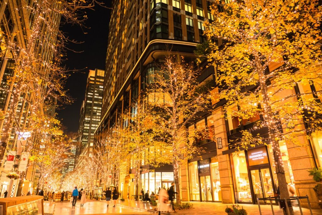 皇居旁的商業區,距東京車站僅5分鐘步行,融合現代與歷史魅力,是東京最具代表性的商業、金融與時尚中心,隨處可見辦公大樓、高級百貨、精品店、餐廳和藝術空間。而冬季的「丸之內仲通(丸の内仲通り)」則會點亮璀璨的燈飾,營造出浪漫的氛圍,是著名的東京聖誕燈飾景點。