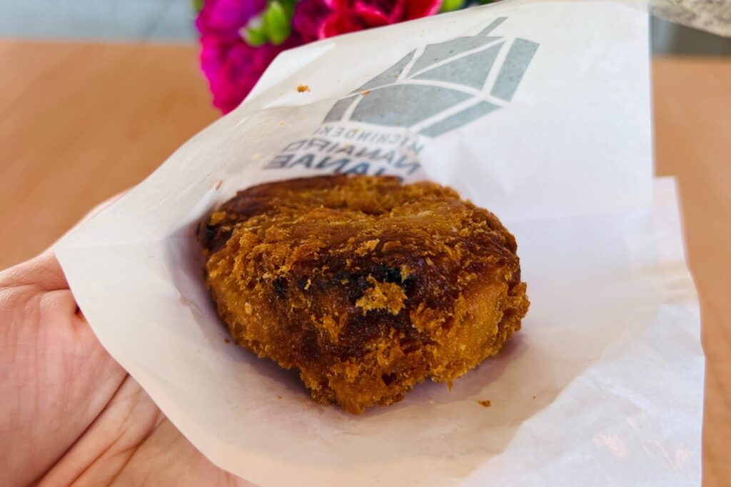 七飯町的「福田農園」所栽培的「國王香菇(王様しいたけ)」最大的特色那碩大厚實的菇身與濃郁的風味,美味的魅力連北海道知事鈴木直道都曾在自己的Instagram上,示範奶油煎國王香菇的料理!因此,絕對不能錯過這邊推出的「國王香菇可樂餅」!