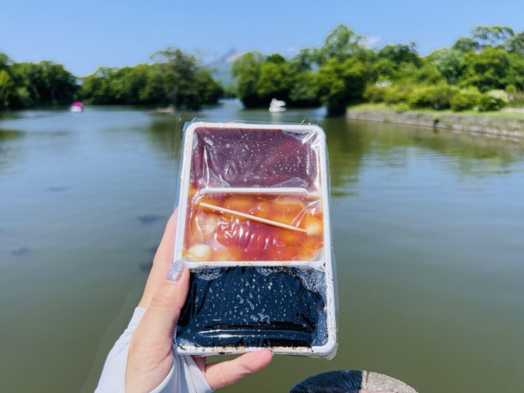 有別於日本一般以長竹籤串起的糰子,使用木片盒裡附的短竹籤享用一口糰子,是大沼糰子的獨特風格!接著介紹給大家兩間大沼糰子的老店。