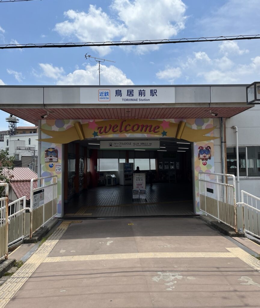 抵達生駒車站後,只需依循車站的指示,步行約3分鐘,便可來到「鳥居前纜車站(鳥居前駅)」那座復古又可愛的月台入口。