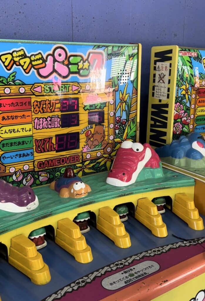 在生駒山上遊樂園,除了那些能一邊遊玩、一邊欣賞美麗山景的設施,還藏著一些靜靜等人發現的小角落。像是「打鱷魚」的遊戲機台,模樣還停留在我們童年的記憶裡,只要敲一下,彷彿連小時候的笑聲也會跟著跳出來。