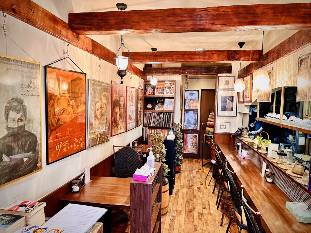 店主顯然是電影癡。不僅將喫茶店空間打造成電影主題,我還看見他在店內張貼公告,募集同好,一起組成電影社團,定期舉辦電影欣賞會及討論會。