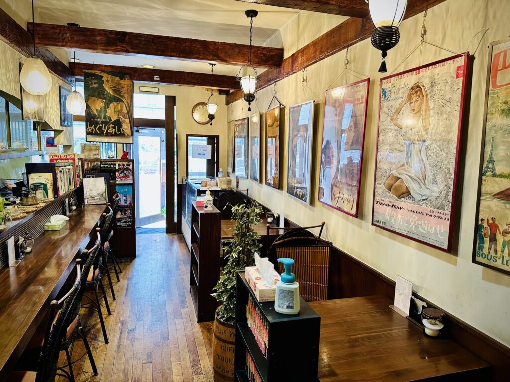 位於宇都宮市池上町、步行約3分鐘即可到達東武宇都宮站的「シネマカフェ 宇都宮名畫座」是一家氣氛濃厚的純喫茶,於一樓打造迷你「電影院氛圍」,以大量昭和年代洋片海報與導演劇本裝飾牆面,讓人彷彿置身舊時光裡的電影小聚場所。店內提供價格合理的手沖咖啡、紅茶,以及甜點和簡餐,讓人以平實價位享受復古電影氛圍。