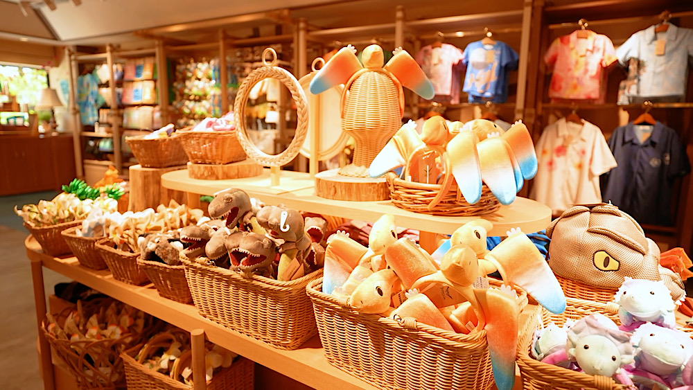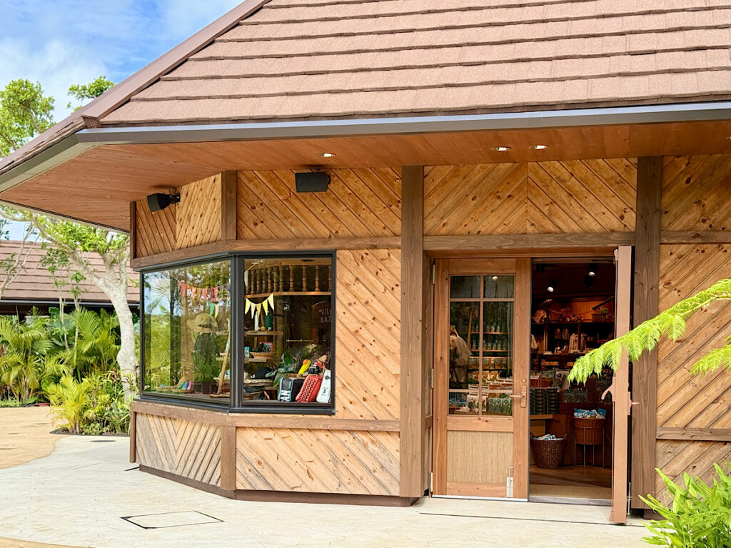 一入園,馬上就能看見左右兩側各有一間伴手禮小舖,不用繞遠路就能開始你的購物模式。這兩間店鋪的裝潢風格非常統一,都以濃濃的叢林風為主題,搭配木質與綠植元素,彷彿走進一個小型熱帶部落。