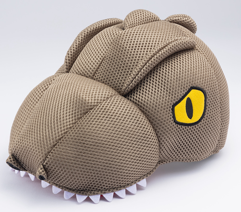 相比上一款暴龍造型的毛絨帽,這款恐龍造型髮箍可以說是它的可愛版本!設計靈感一樣來自 DINOSAUR SAFARI,這次換成一隻小暴龍趴在你頭上,張著嘴巴彷彿隨時要咬人,但多了幾分俏皮與親和力。