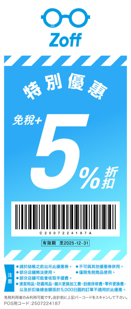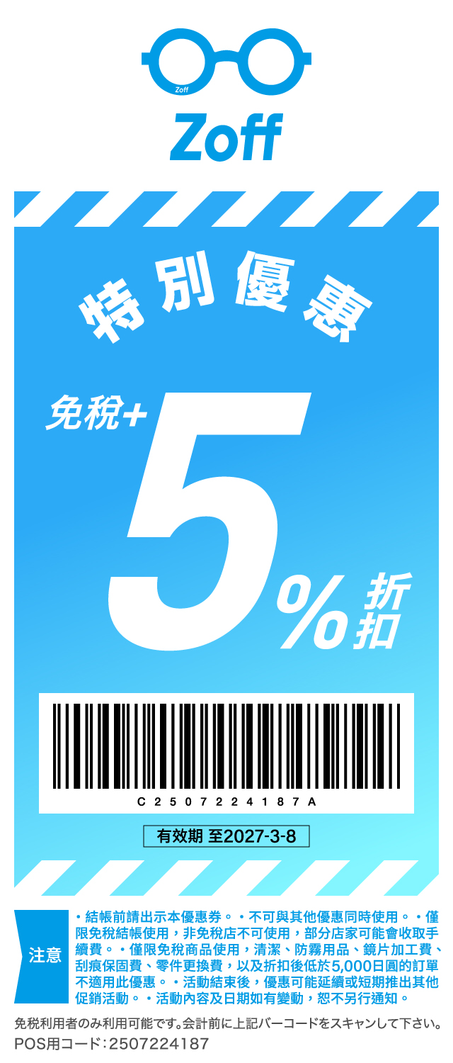 錯過這一刻,回台灣可能會後悔……現在就保存優惠券,到日本旅遊時,別忘了前往 Zoff 門市!