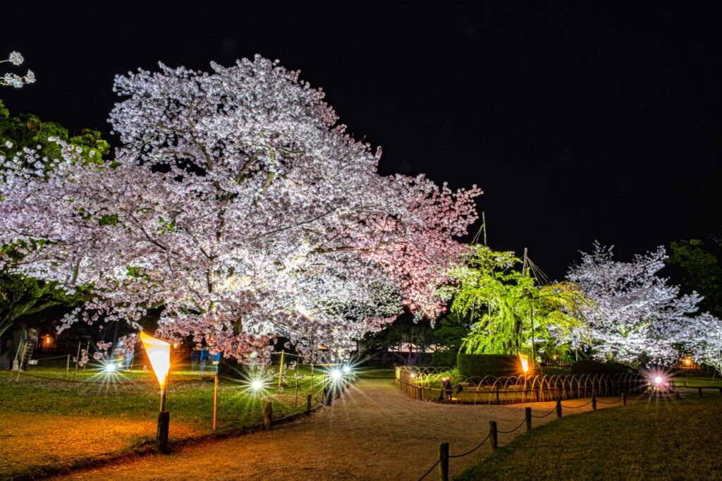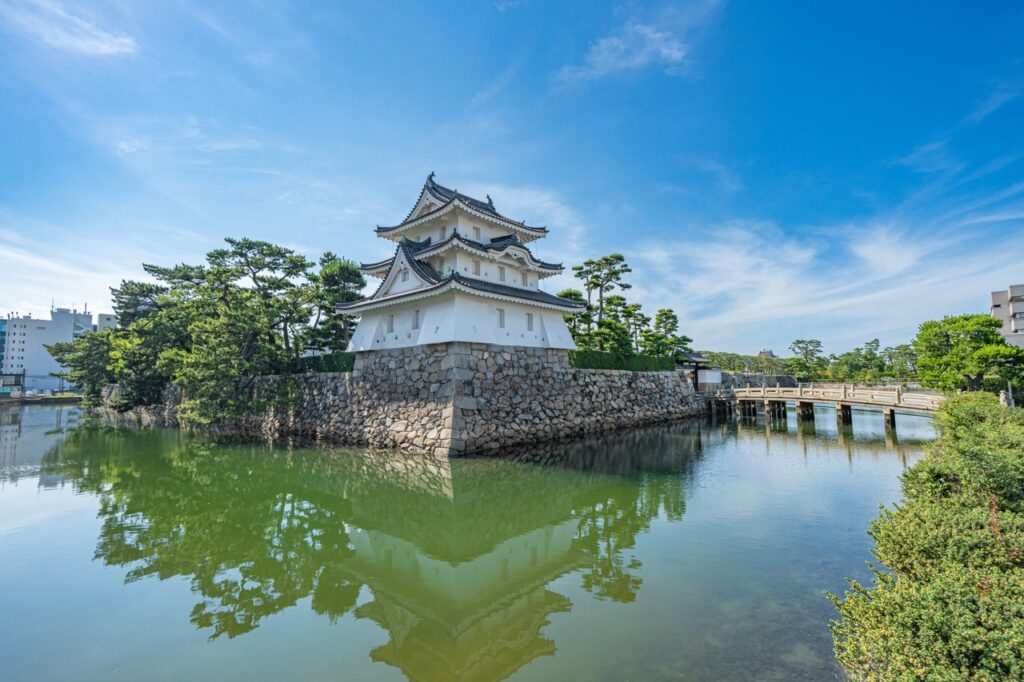 現今保留的主要結構包括「艮櫓」、「月見櫓」、「渡櫓」與石垣,雖本丸建築已不復存在,但透過修復工程與庭園規劃,整體環境依然保有江戶時代水城的格局與氛圍。可以沿著內堀緩步繞行,觀看護城河映照櫓樓的倒影,也可在春天賞櫻、秋季觀楓,感受歷史與四季共構的節奏。