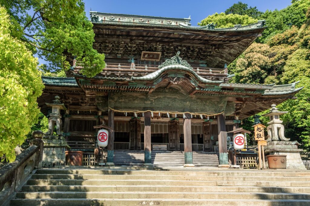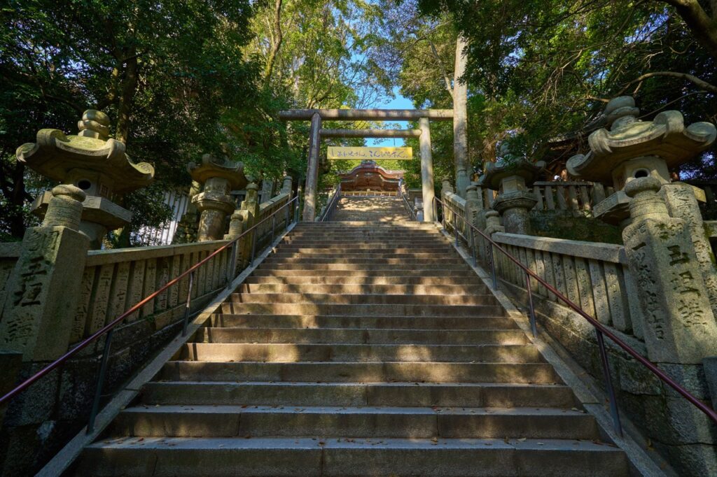 前往本宮需從表參道起步,徒步攀登 785 階石階,沿途經過商店街、燈籠林立的階段,與古木環繞的神域,最終抵達海拔約 251 公尺的主殿。本宮坐落於象頭山山腰,視野遼闊,向西可望讚岐平原與瀨戶內海,是兼具「體力挑戰」與「心靈洗滌」的參拜體驗。若體力許可,還可繼續向奧社前進,需再登上 583 階,總計 1,368 階,完整走完大約需 2 小時。