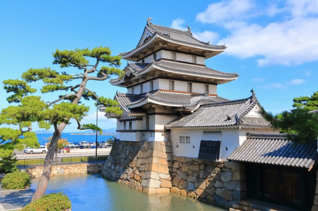 搭乘琴電或步行至高松站周邊,即可抵達另一處充滿歷史風格的景點「高松城跡」,也被稱為「玉藻公園」。這裡是日本少數幾座以臨海築城聞名的水城,最初由戰國名將生駒親正於 16 世紀末期所建,背山面海、以護城河引入海水,形成天然防禦體系。