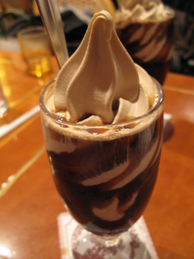 Mikado Coffee販售的漂浮冰咖啡,上面那一球咖啡冰淇淋,萃取自家的咖啡而製作而成,吃起來的純正口感,當然就是和一般超商裡賣的咖啡冰淇淋味道不同。搭配的冰咖啡本身並無添加甜味,因此不至於讓人有口味過甜的疑慮。這種類型的咖啡空間,移植了義大利咖啡館的氣氛,讓我感覺,在日本橋的巷弄裡,好像偷得了一口任意門的隧道,置身他方。Mikado Coffee秉持著自身低調的風格而持續前進,在東京嗜愛咖啡的老饕之間仍將口耳相傳。