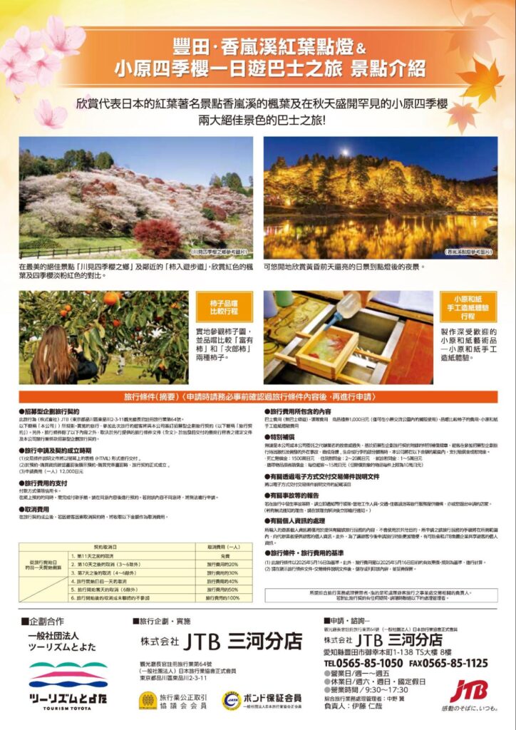 行程名稱 豐田・香嵐溪紅葉點燈&小原四季櫻巴士一日遊