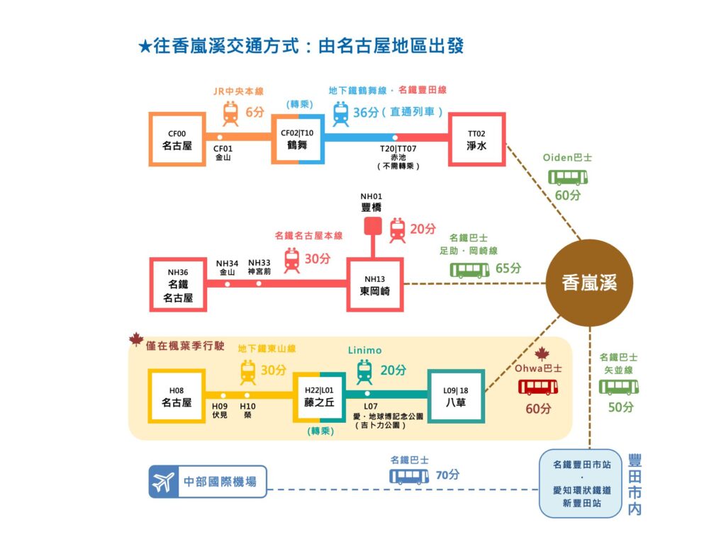 你以為香嵐溪很遠、交通很複雜嗎?其實從名古屋或「中部國際機場」出發都很方便,搭配這次的巴士一日遊行程,更是零轉車、免查時刻表,輕鬆抵達絕景現場!