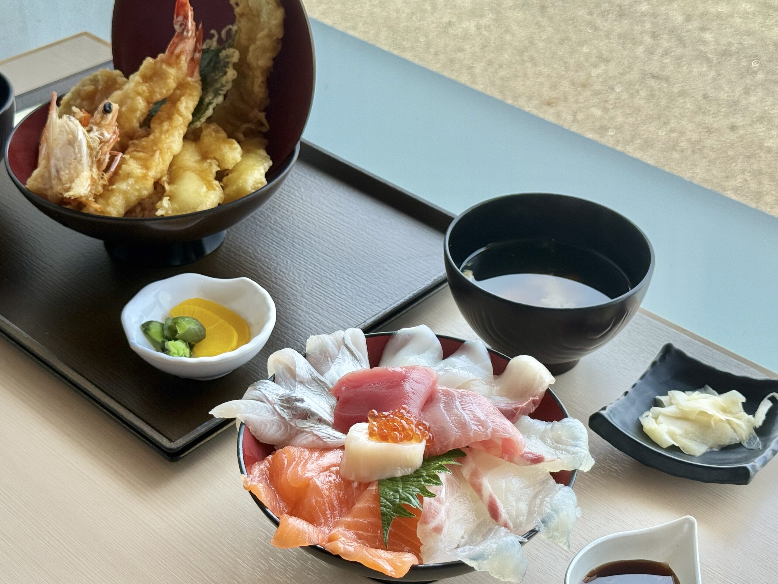 這裡的海鮮丼、天婦羅丼通常都是使用當天早上現撈的魚種現切製成,不但價格實惠,還能吃到當天精選的新鮮魚獲,包括必嘗名物太刀魚料理!