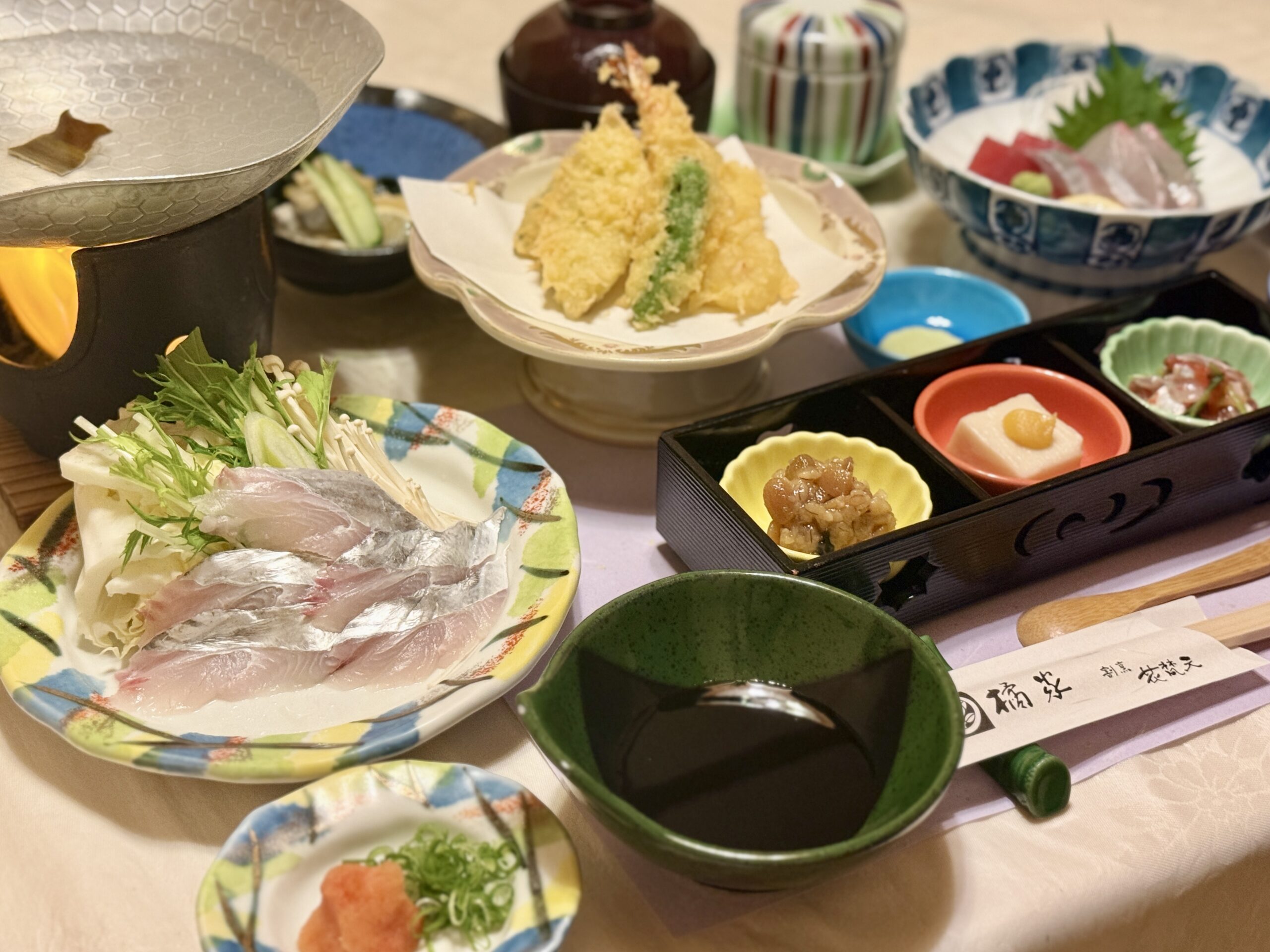 我們造訪當天品嚐的是太刀魚涮涮鍋套餐非常豐富,從主角太刀魚的滑嫩口感,到各種配菜的細節都能感受到店家的用心。特別是那道幾乎像布丁般的「芝麻豆腐」,以及能直接配飯享用、風味濃郁的金山寺味噌,與一般味噌湯中常見的味噌完全不同,是屬於可以細細品嚐的「吃的味噌」。這些看似配角的料理,不僅沒有被主菜搶走風采,反而讓整套餐點的層次更加完整。