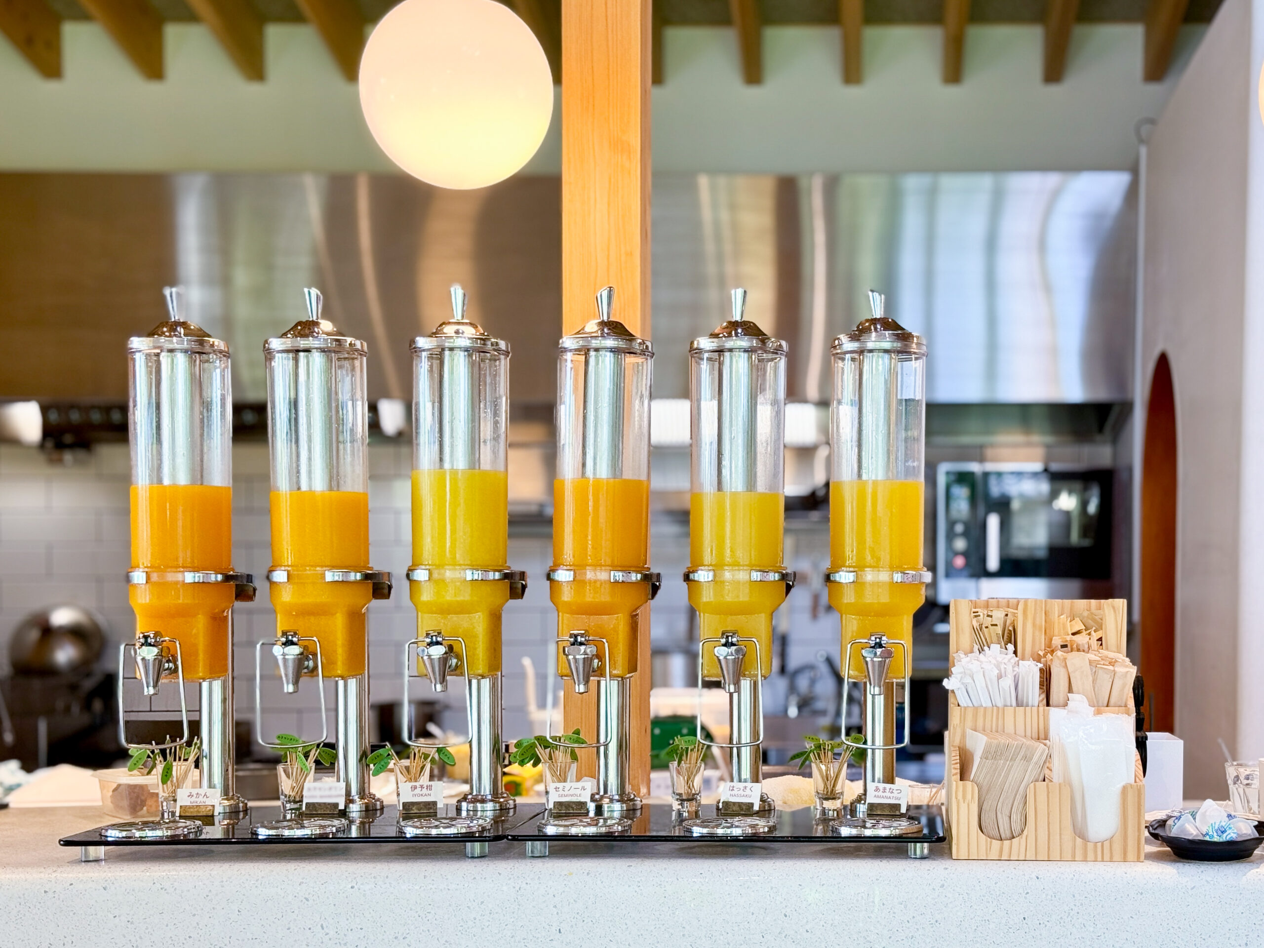 最吸精的是店內排列如展示品般的果汁容器,裡頭裝著多種不同品種蜜柑所製成的果汁,色彩繽紛又有設計感。