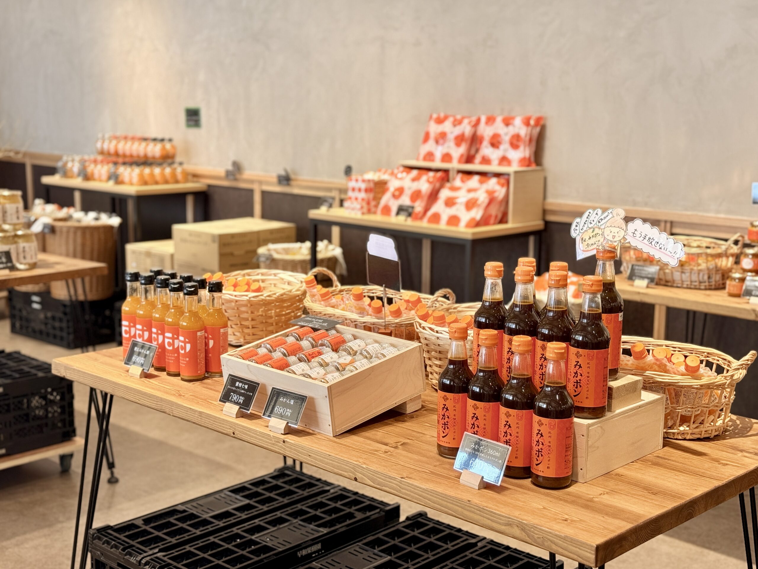 這間咖啡廳早和果樹園果汁和果實(早和果樹園果汁と果實)也是由在地果農「早和果樹園」直營,除了主打使用自家栽種或是鄰家農園製成的蜜柑商品外,也附設了一家風格可愛的伴手禮店,賣有各種蜜柑果汁、果醬、果凍、甜點禮盒等,非常適合當作伴手禮帶回家。