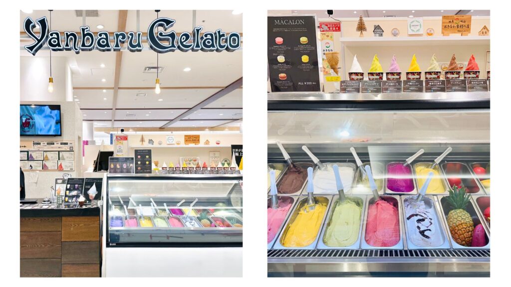 「Yanbaru Gelato(やんばるジェラート)」是沖繩在地的冰淇淋品牌,最大特色是選用各式各樣的沖繩在地食材作為冰淇淋的原料,例如沖繩西瓜、芒果、香檸和紅芋等,每一個口味都看起來很可口。