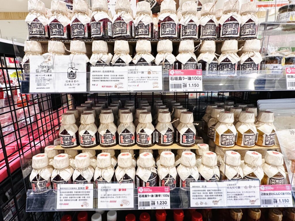 重點是還有超人氣伴手禮的「石垣島辣油」,這款辣油我也是常備在冰箱裡面,不管是加在沖繩麵,還是拿來當作煎餃的醬汁,都讓人欲罷不能,買一瓶完全不夠啊!