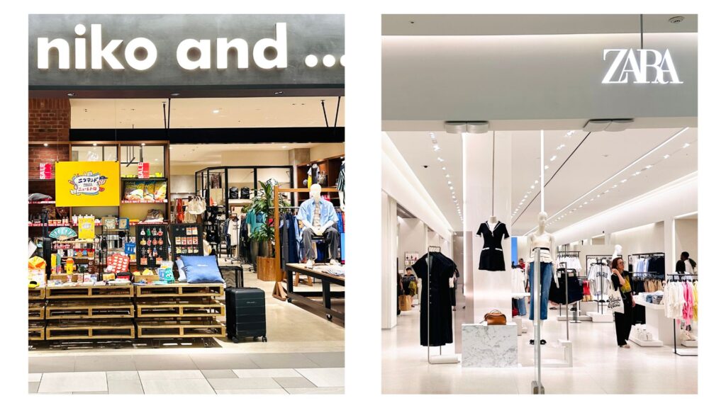 另外還有 niko and …、Zara、SENSE OF PLACE by URBAN RESEARCH 等人氣品牌,如果是想鎖定衣服類的旅人,來這裡一定可以逛的非常盡興。