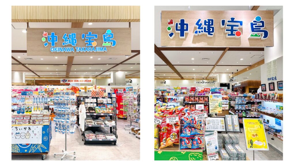 店面分成兩大區域,一邊是琳瑯滿目的沖繩紀念品(圖左),另一邊是讓人看了忍不住想全帶走的沖繩零食與調味料等,應有盡有(圖右)。
