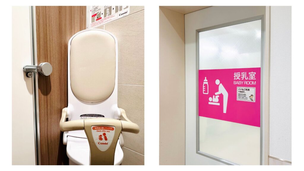 廁所內則設有兒童座椅,方便家長解放雙手;廁所外面,也設有乾淨明亮的哺乳室喔!