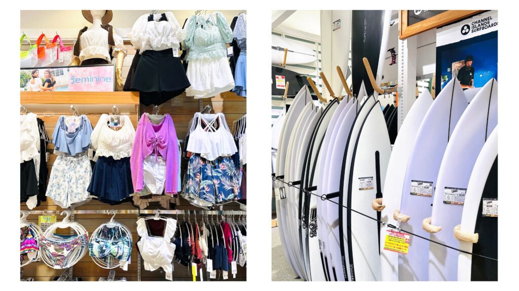 這裡連衝浪板都有賣,而且原本沒帶泳衣,突然想來個海邊行程,也可以來這邊購入,直奔美麗的沖繩海灘!