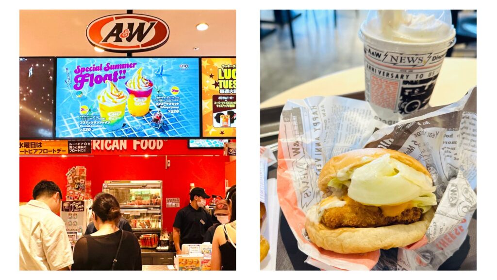 除了塔可飯,也不能錯過這間「全日本只有沖繩有」的美國速食品牌「A&W」。這家從美國加州傳來的品牌,於 1963 年在沖繩開設日本第一家分店,至今仍是「沖繩限定」的美食象徵。