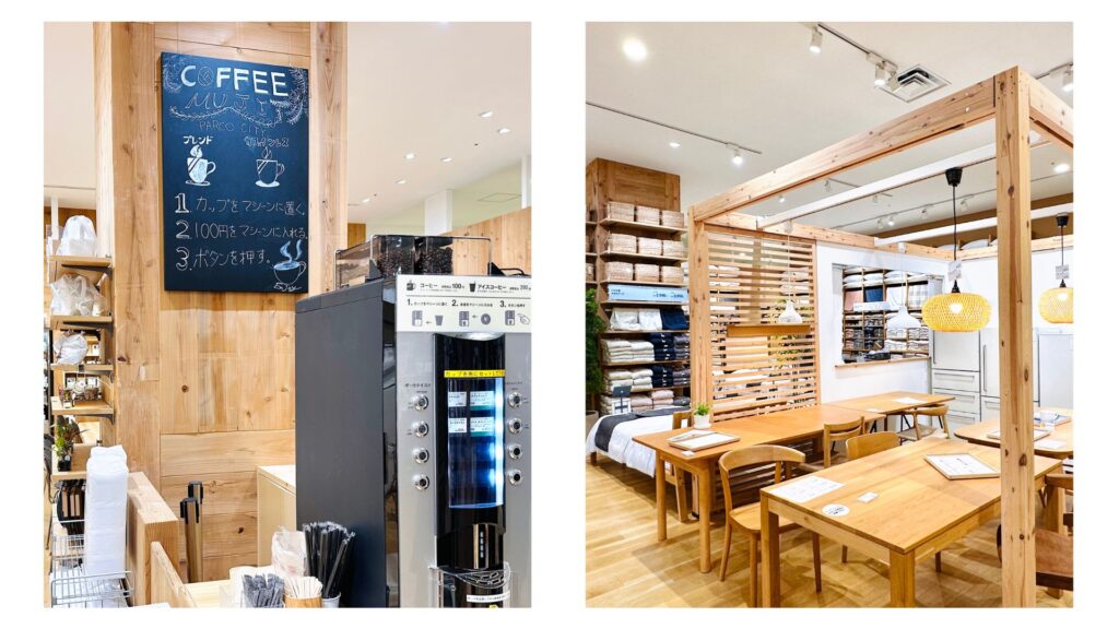 浦添西海岸 PARCO CITY 的無印良品有設置一個小小的咖啡區,只要 100 日圓~200 日圓就可以喝上一杯美味的咖啡。店面整體非常寬敞,需要花點時間才能全部逛完。