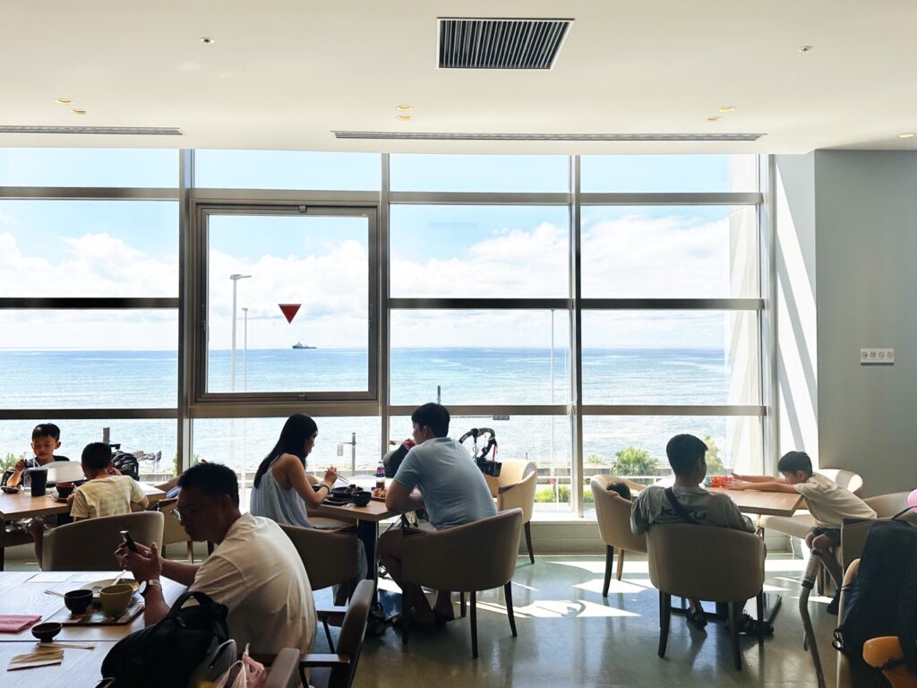 以上提及的「Taco Rice Cafe Kijimuna」和「A&W」漢堡都位於 2 樓的美食廣場,一整排的靠海座位,到了午後會灑進滿滿陽光,在室內舒服的吹冷氣吃著美食,奢侈享受窗外壯觀海景,難怪每次到假日或連假幾乎是座無虛席。