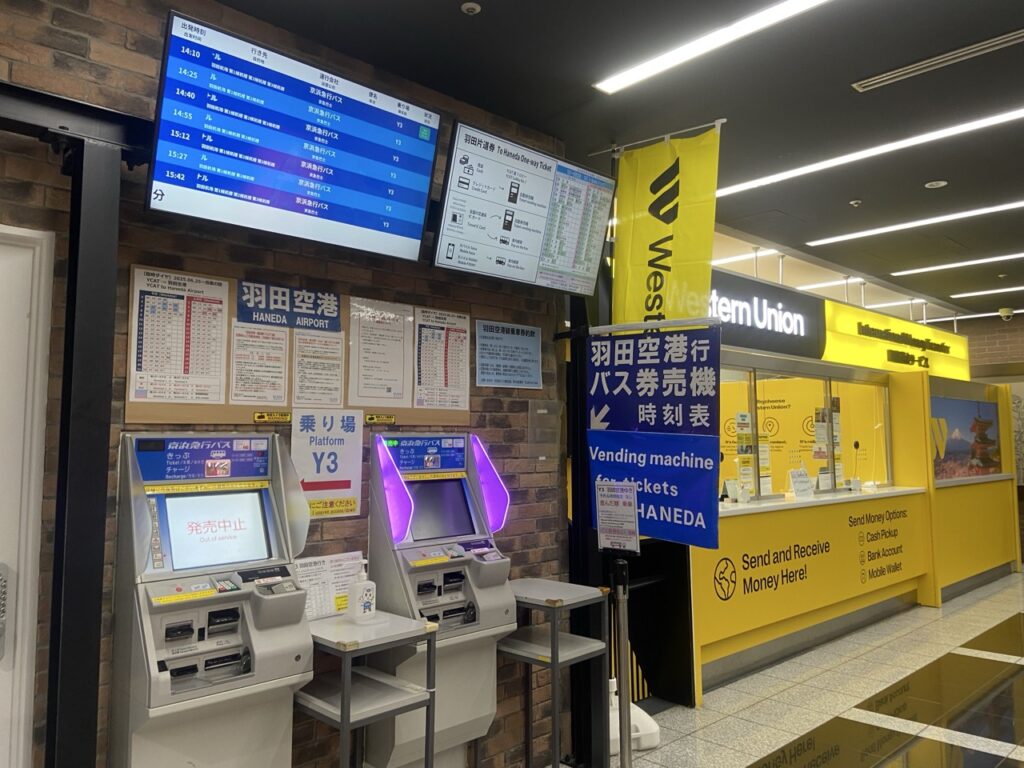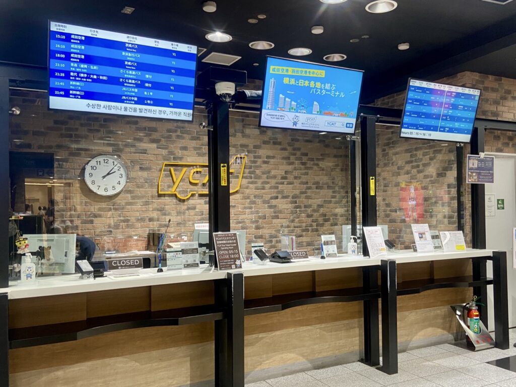 從橫濱站東口連通到「Sky Building(スカイビル)」的 YCAT 機場巴士,能直接前往羽田機場,在售票櫃枱旁的自動售票機就可以購票!有大件行李、想一路有位子坐到航廈門口,非常推薦!